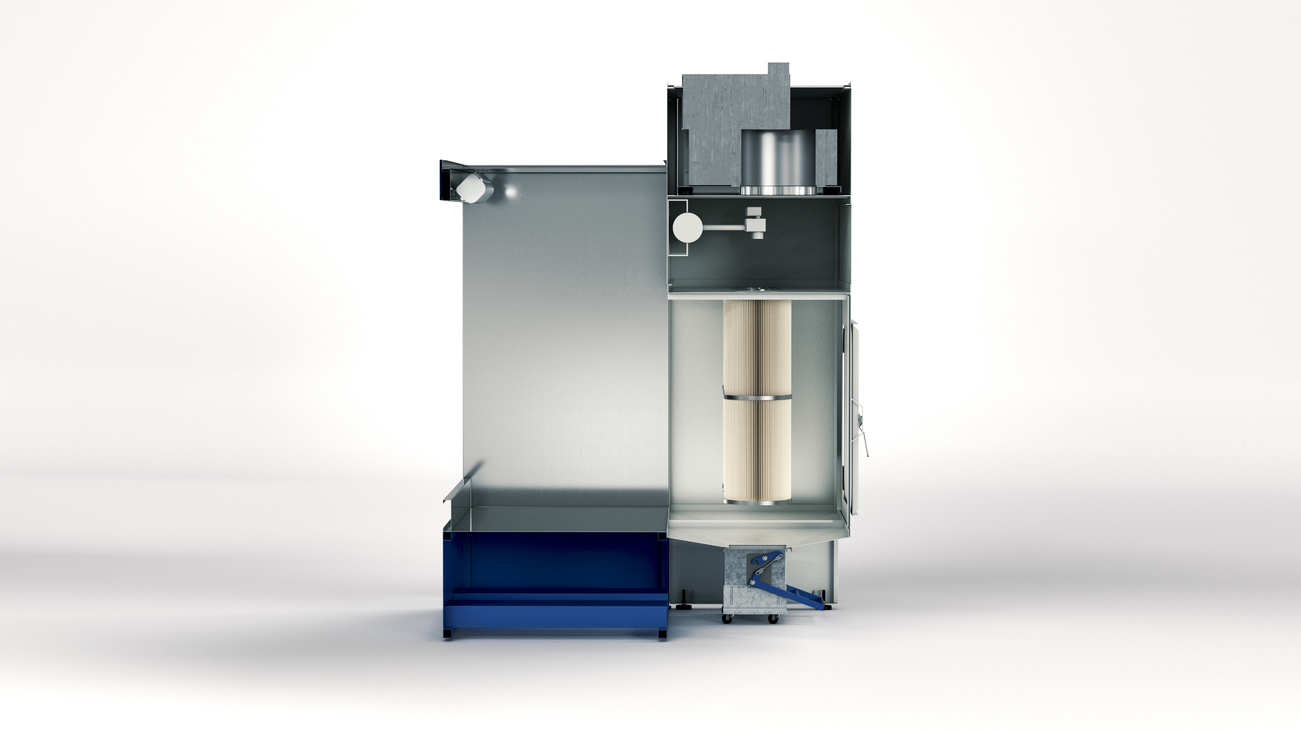 Noch vor Markteinführung und Präsentation der realen Produkte haben wir die neuesten Lackierkabinen für die Firma Nordson visualisiert. Während die Abmessungen von bis zu 4x4m für eine fotografische Darstellung eine große Herausforderung dargestellt hätten, konnten wir auf Basis der vorhandenen CAD-Daten die Produktbilder innerhalb kürzester Zeit erzeugen. Die fotorealistische Qualität der Darstellung verblüffte unseren Kunden. Ebenso die Tatsache, dass unser Team die Luftfilter – die in den CAD-Daten fehlten – derartig überzeugend nachgebaut hat.