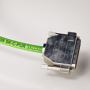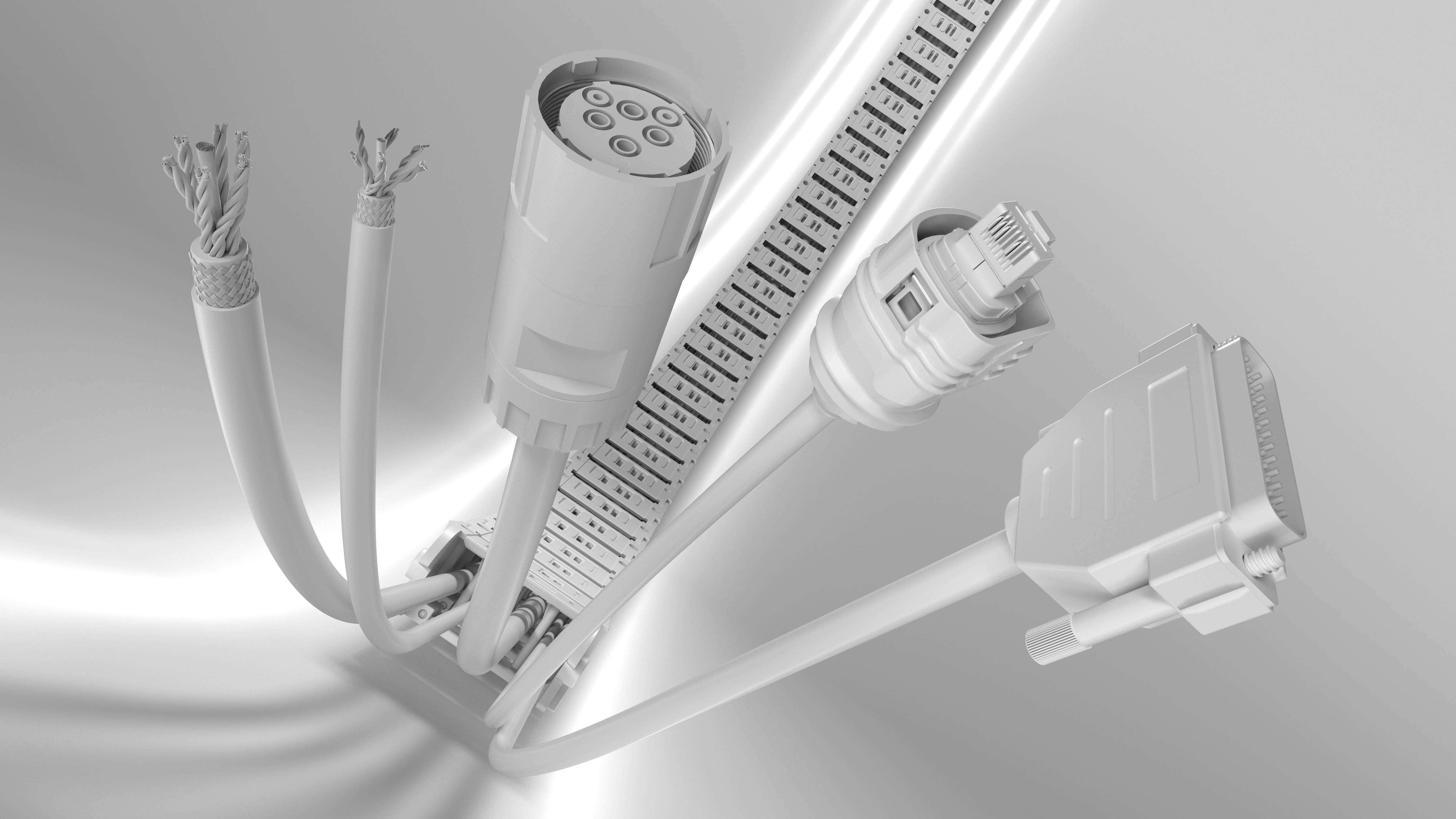 Um in diesem Fall die Kabel samt Adern, Schirmung und Kettenführung überhaupt inszenieren zu können, haben wir für jedes Kabel ein sogenanntes Rig erstellt, mit dessen Hilfe wir das Kabel flexibel biegen können. Mit dem Ziel, eine bestechende Bildqualität zu erreichen – die auch einen Großdruck für einen Messestand erlaubt – wurde jedes einzelne Material von uns per Hand verfeinert.